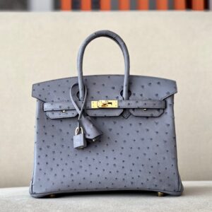 Hermès Birkin Ostrich leather blue agate gray color matching